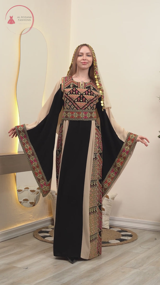 Palästinensisch-jordanische bestickte Thobe mit Hijab Nr. 130